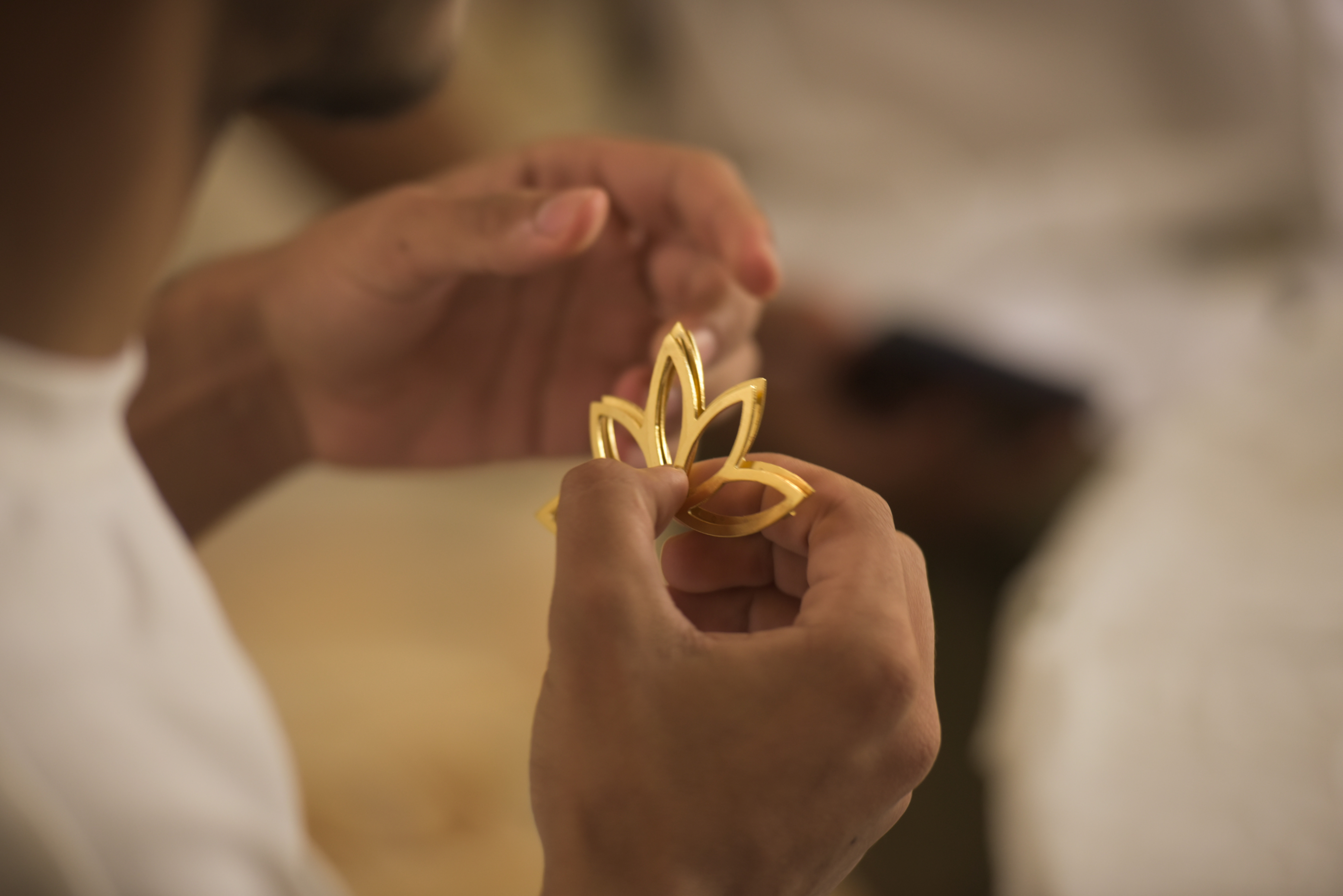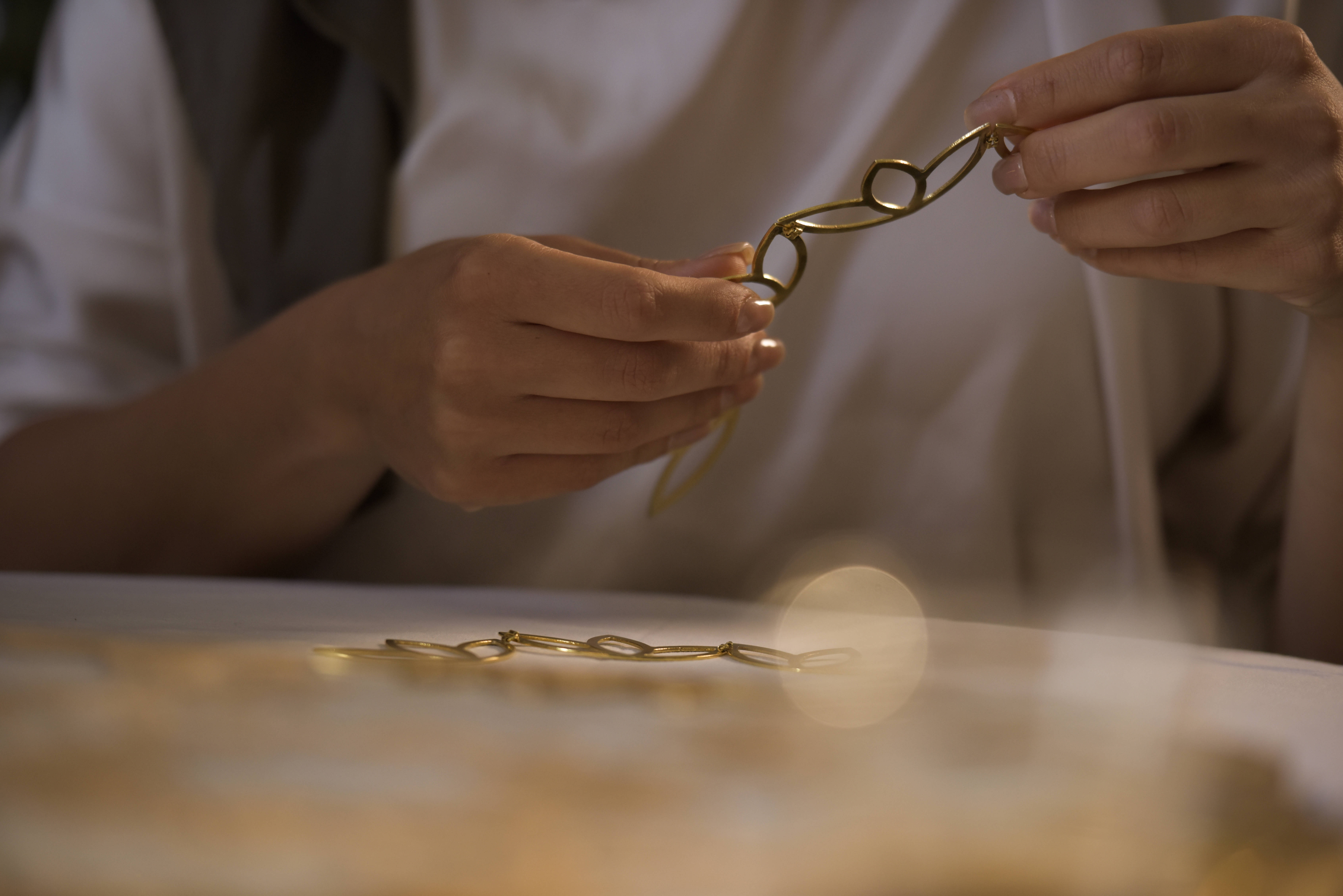 ومن هذا الصمت صنعت ستّ جواهرات من نحاس مطلي بالذهب،
